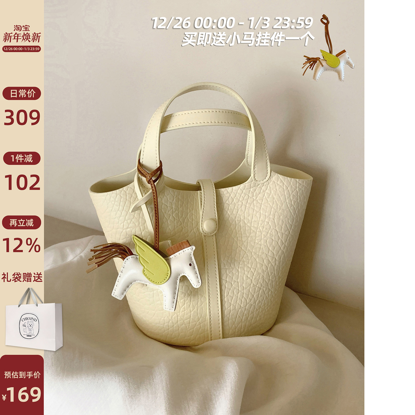 南风Chio2nd 芝芝奶芙水桶包包女淡黄色手提包秋冬超火单肩斜挎包