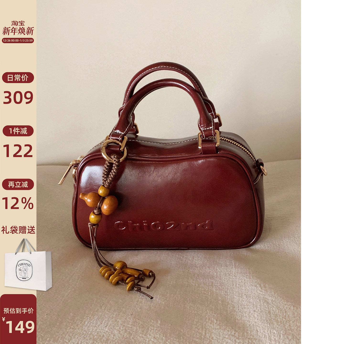 南风Chio2nd 冬月童话真皮牛皮小托特包包女秋冬红色手提单肩斜挎