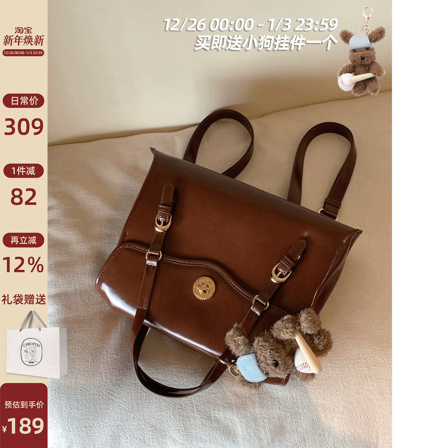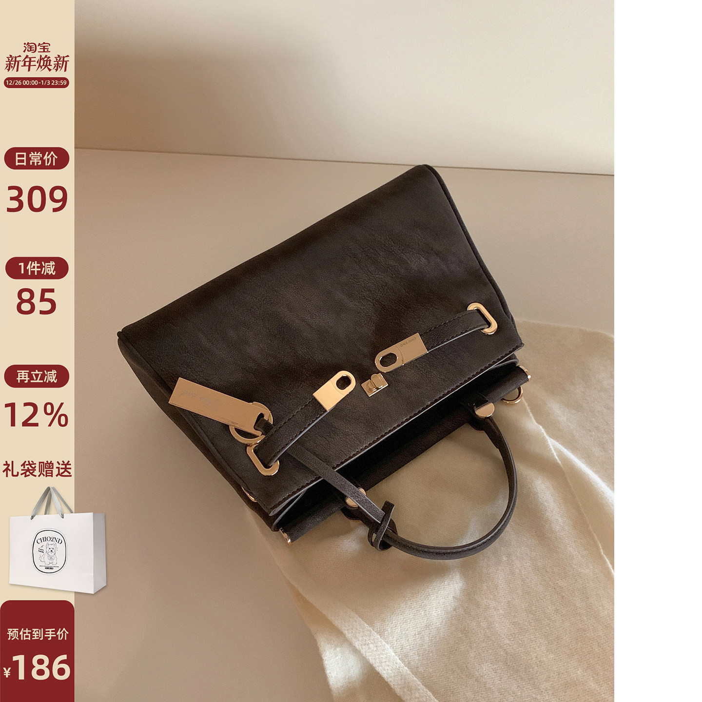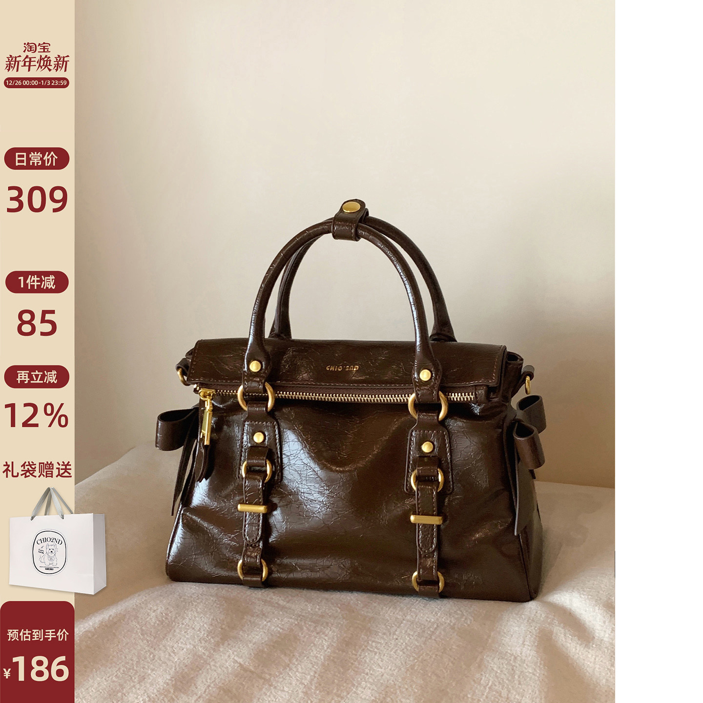 南风Chio2nd 绯光巴黎手提包包女复古油蜡皮质感通勤包单肩斜挎包