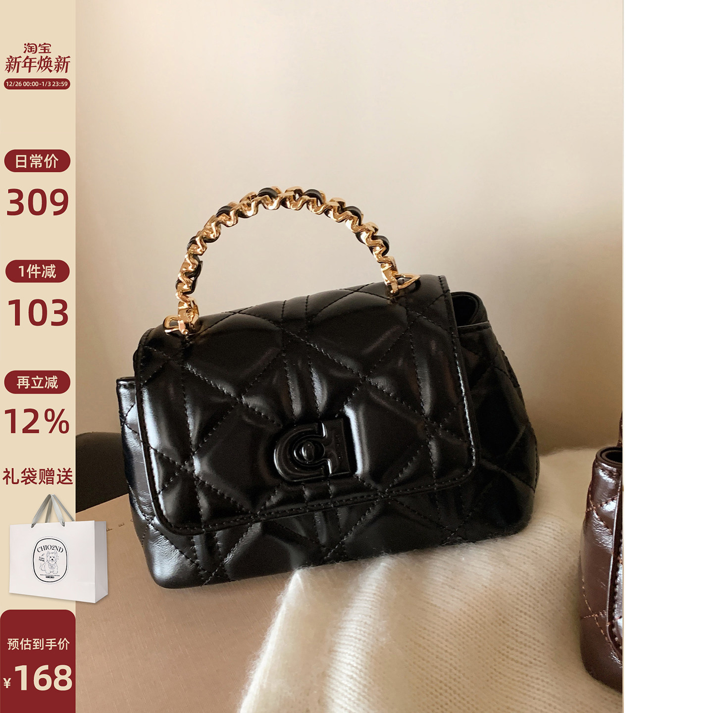 南风Chio2nd 荣耀巴黎小方包包女黑色菱格手提包百搭单肩斜挎小包