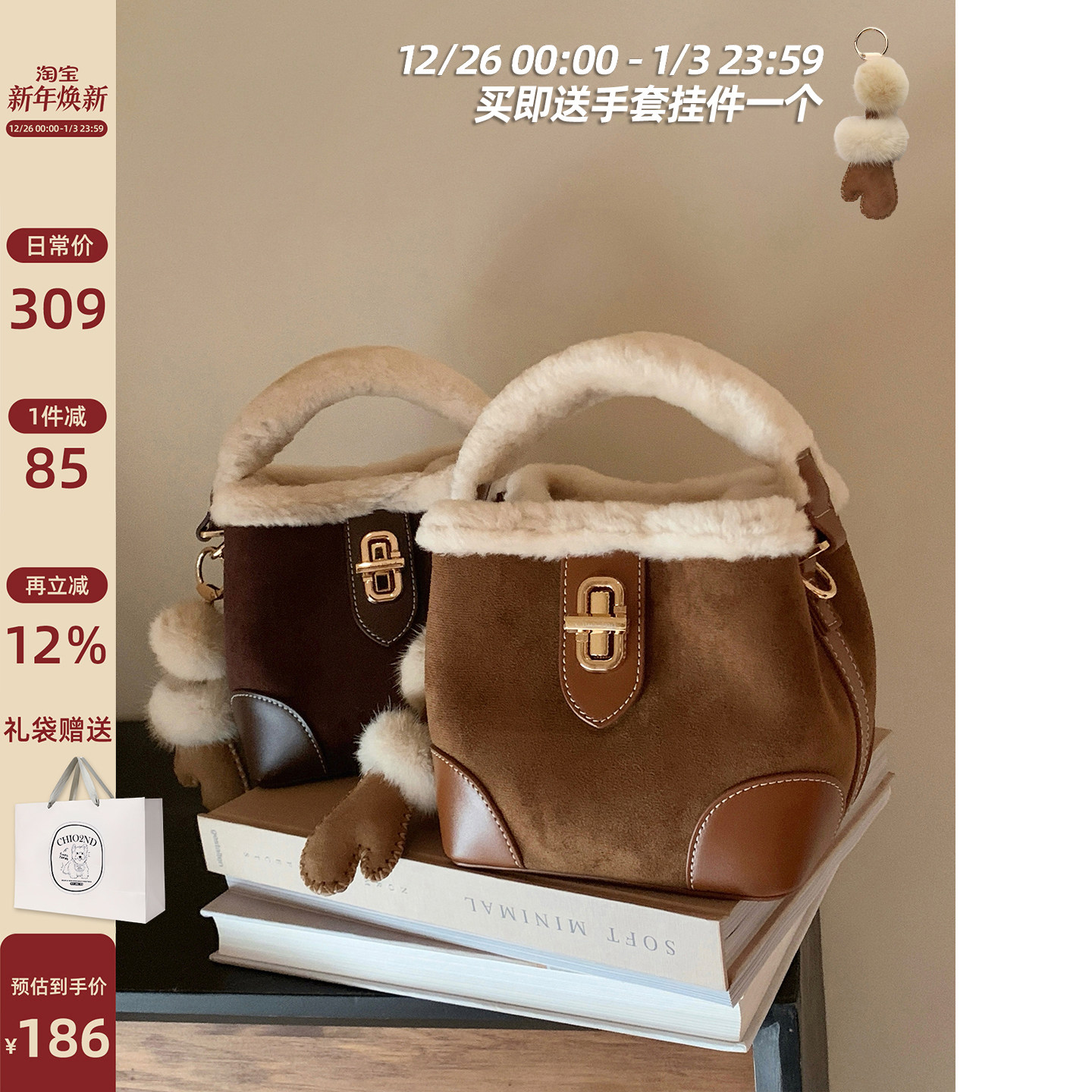 南风Chio2nd 真羊毛深秋绒语水桶包包女款毛绒手提包单肩斜挎小包