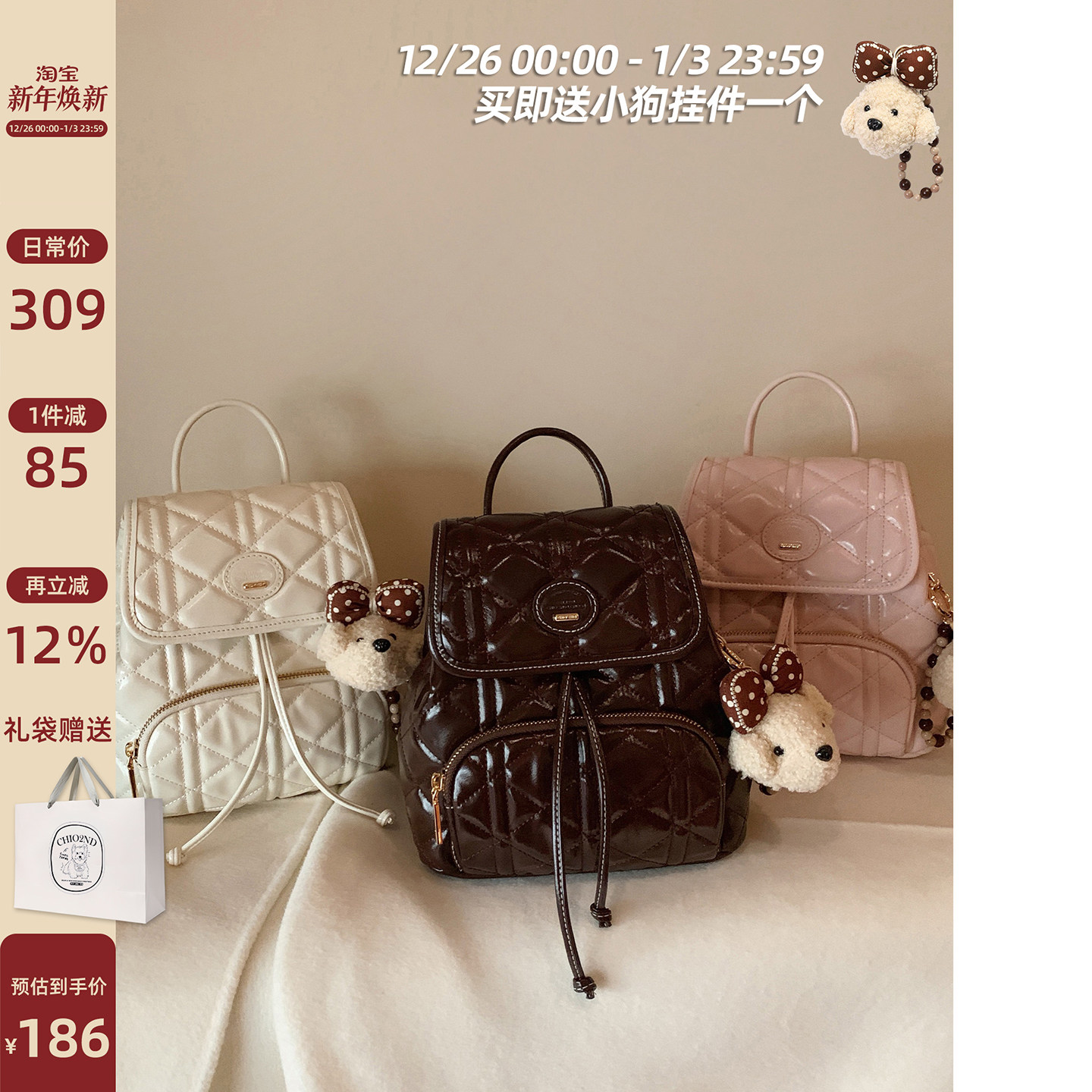 南风Chio2nd 北国雪松双肩包包女秋冬复古菱格手提单肩斜挎小背包