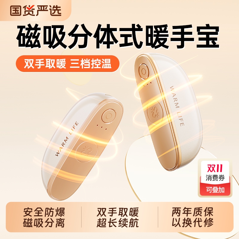 【分体式双磁吸】新款暖手宝充电款二合一暖宝宝迷你随身携带便携式usb手握防爆自发热冬天取暖器女生伴手礼