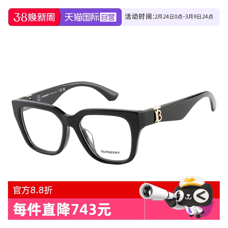 【自营】Burberry博柏利眼镜框复古方框巴宝莉近视镜男女OBE2403F