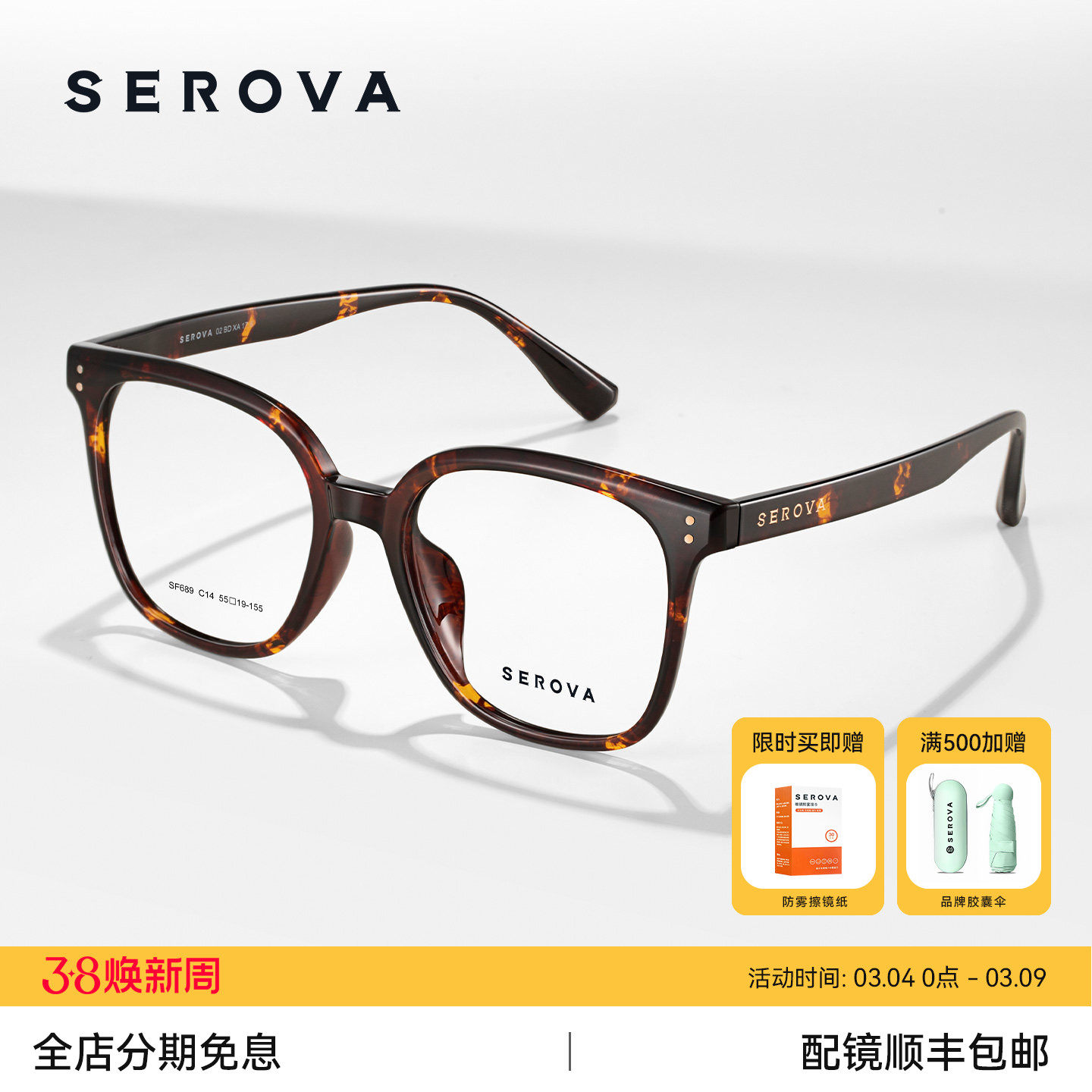 施洛华近视眼镜时尚玳瑁色大方框女素颜防蓝光可配度数男款 SF689