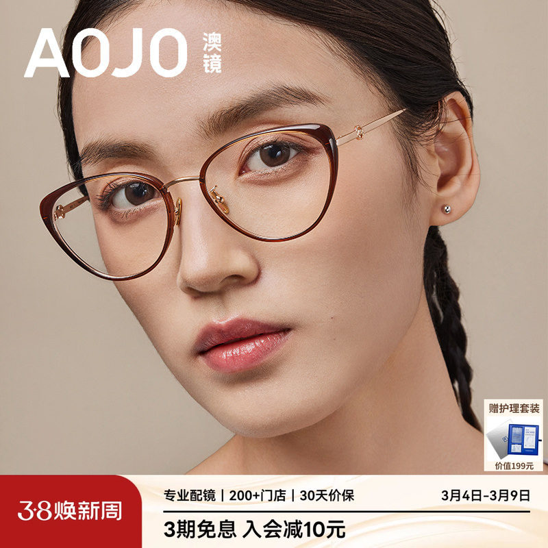 AOJO澳镜猫眼镜框时尚高级感眼镜女近视可配度数AJ102FM114