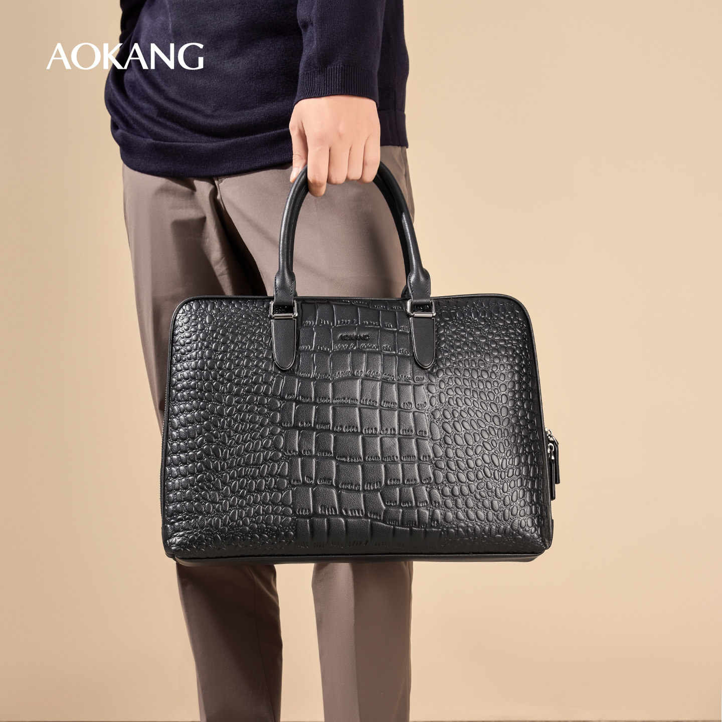 奥康 皮具2026春季新款真皮鳄鱼皮纹男手提包商务公文包牛皮男包