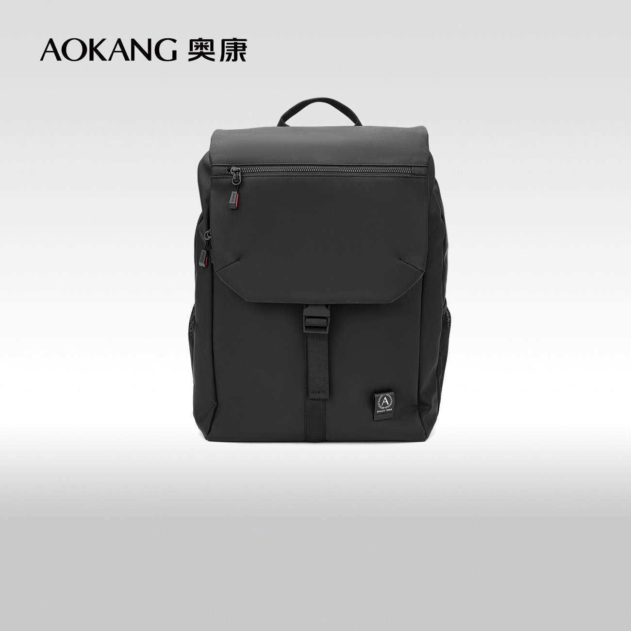 奥康男包黑色竖款双肩包潮流背包大学生电脑包大容量旅游包出差包