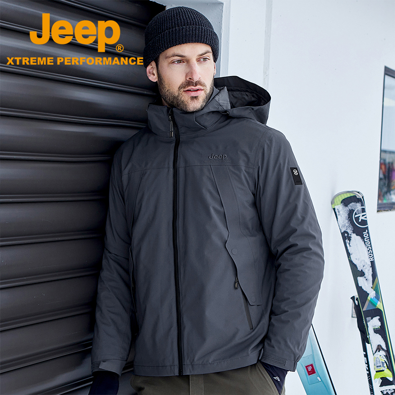 Jeep吉普冲锋衣男士夹克三合一2025新款抓绒户外两件套装防风外套