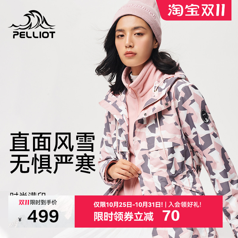探路者冲锋衣秋冬女款户外两件套三合一防水抗寒登山服抓绒可拆卸