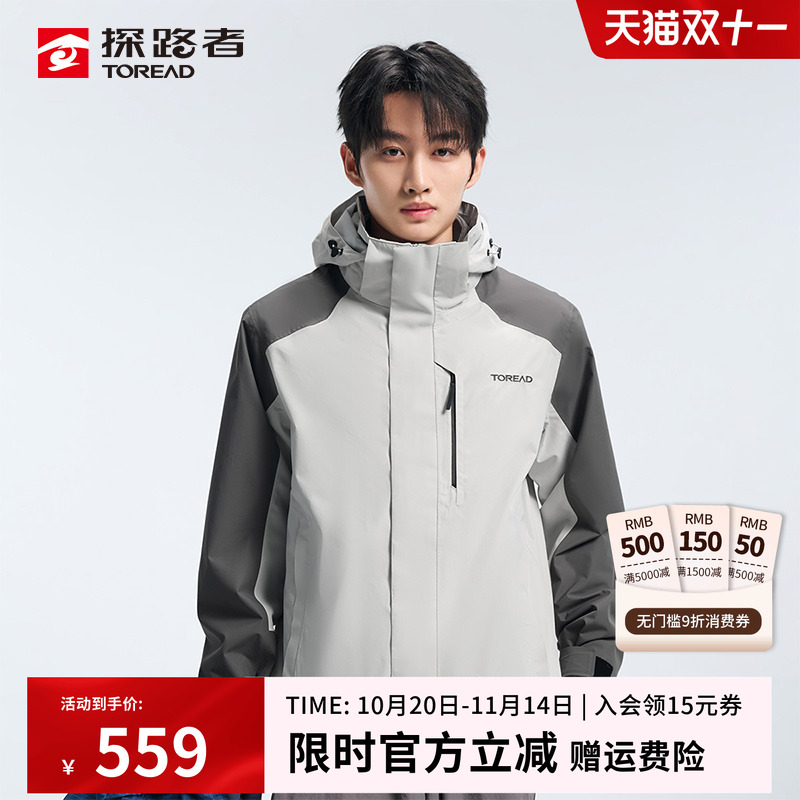【特价秒杀】探路者三合一可拆卸抓绒冲锋衣两件套户外防水登山服