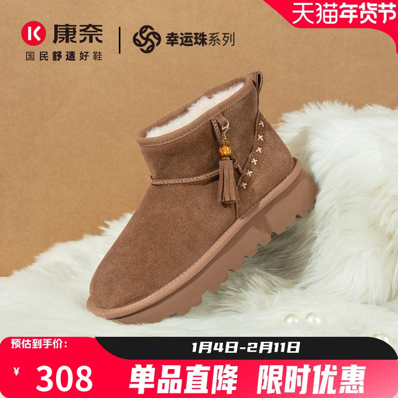 康奈女鞋2025冬季新品时尚百搭雪地靴保暖靴子防水防滑舒适女棉鞋