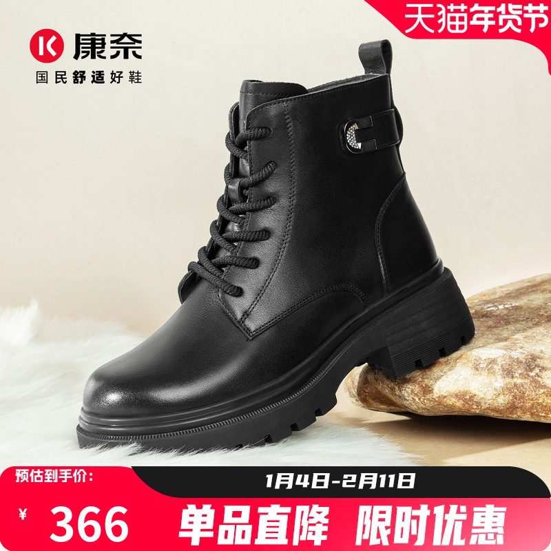 康奈女鞋2025冬季新品时尚休闲百搭马丁靴女真皮保暖加绒舒适日常