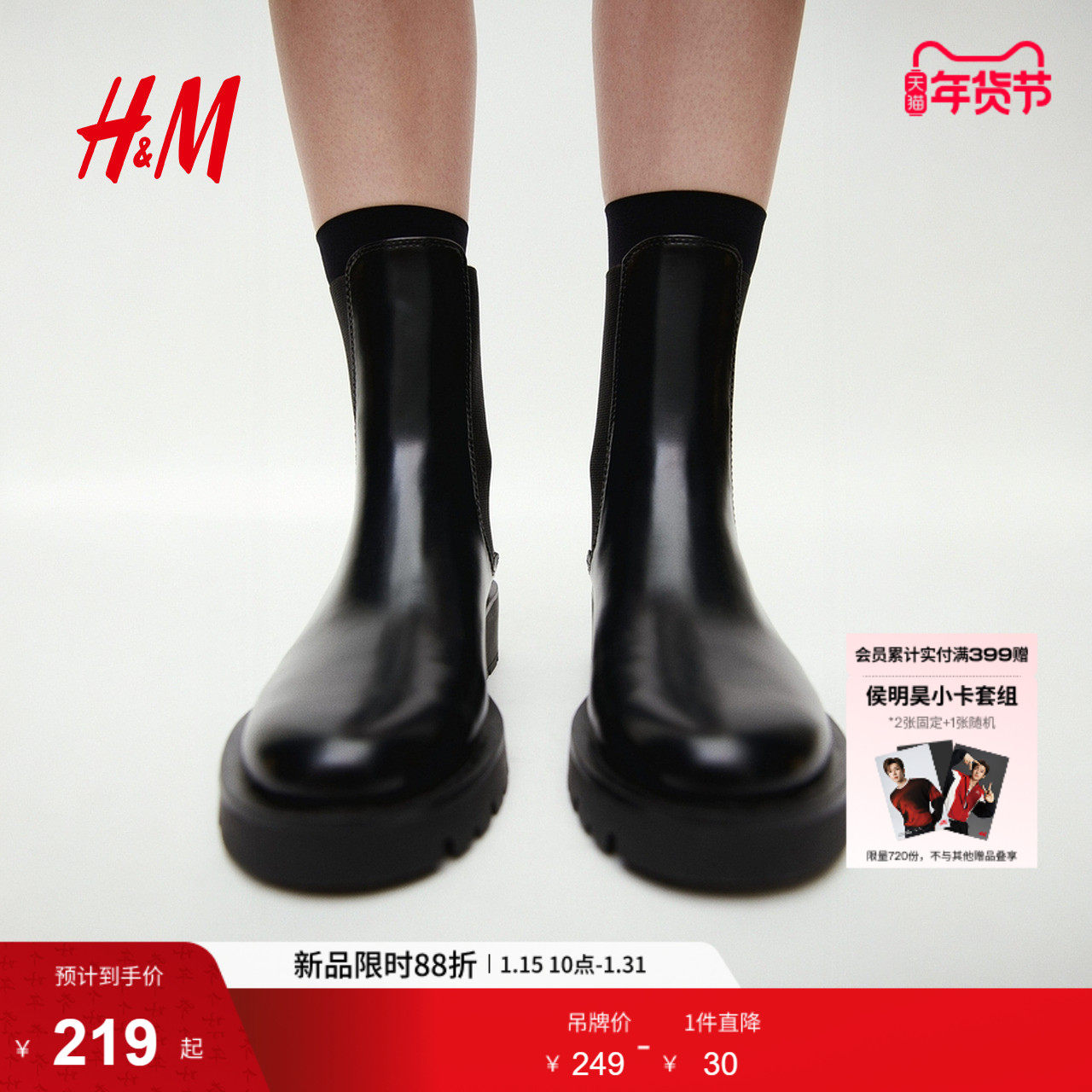 HM女鞋靴子2024冬季新品女士休闲时尚中筒无内里切尔西靴1240562