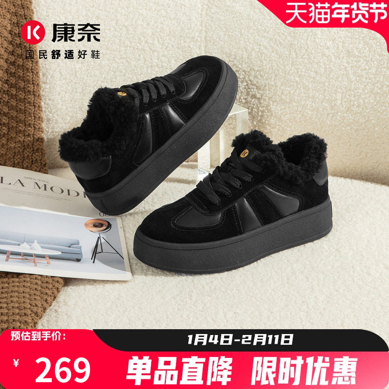 康奈女鞋2025冬季新品时尚休闲百搭板鞋保暖加绒系带舒适日常通勤