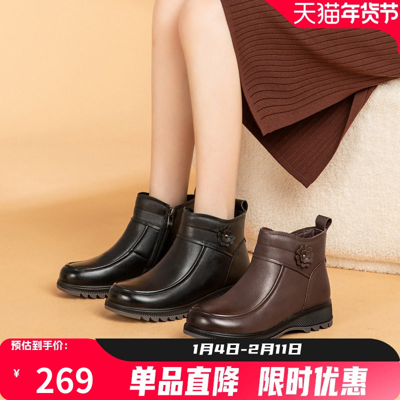 康奈女鞋2025冬季新品短靴子保暖加绒软底舒适妈妈鞋中老年人棉鞋