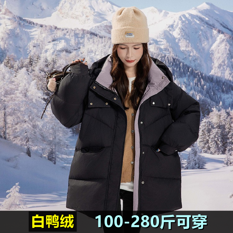 加大码轻薄羽绒服女200斤胖mm300孕妇宽松减龄保暖时尚白鸭绒外套