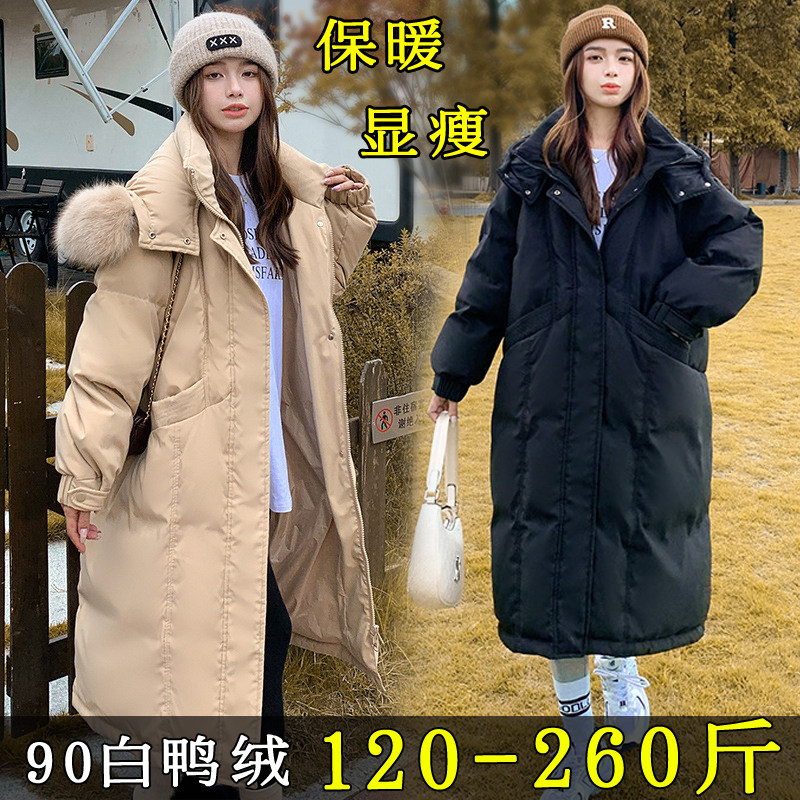 特大码过膝羽绒服女装300斤冬季200胖mm加肥加大显瘦宽松加厚外套