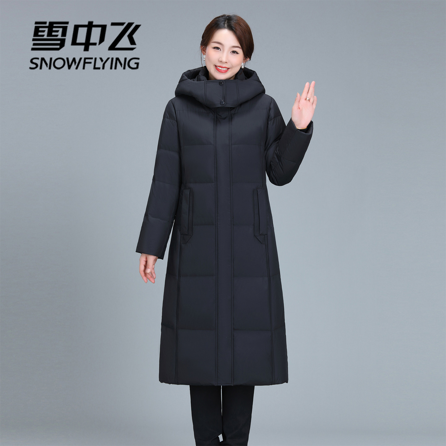 雪中飞冬季长款过膝羽绒服女时尚修身中年加大码女装防寒服女外套
