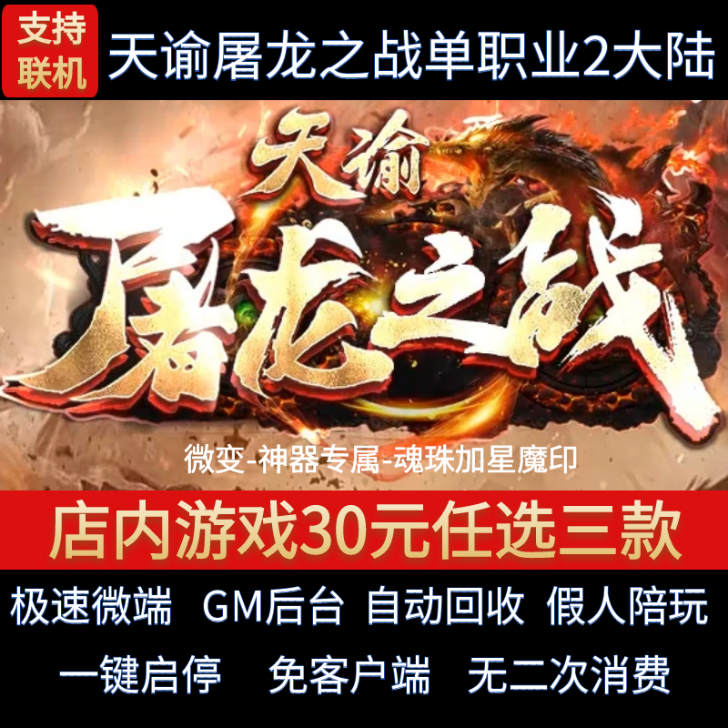 传奇单机电脑版天谕屠龙之战单职业二大陆微变假人GM后台微端联机
