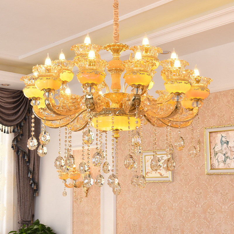 欧式客厅金色水晶吊灯6/8头卧室灯餐厅蜡烛灯简约大气复式楼灯具