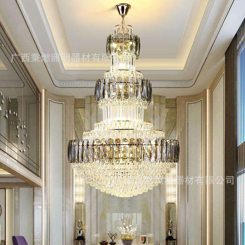 欧式水晶吊灯复式楼别墅客厅楼梯大吊灯奢华大气多层灯具挑空酒店