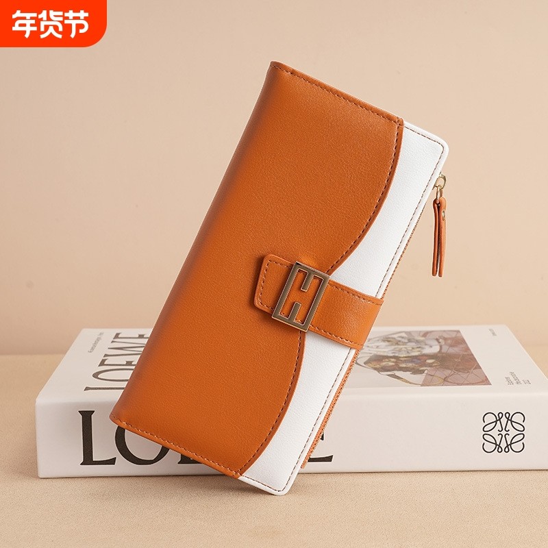 钱包女生长款新款韩版简约拼接手拿包wallet零钱包卡包女士高级感