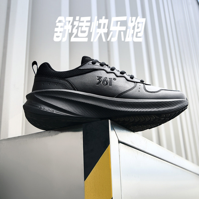361男鞋运动鞋男火山雨屏皮面防泼水2025黑色新款361度跑步鞋子男