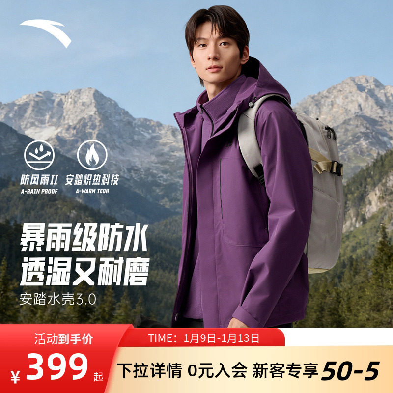 安踏大地之壳3 水壳三合一男款硬壳冲锋衣暴雨级防泼水防风衣外套