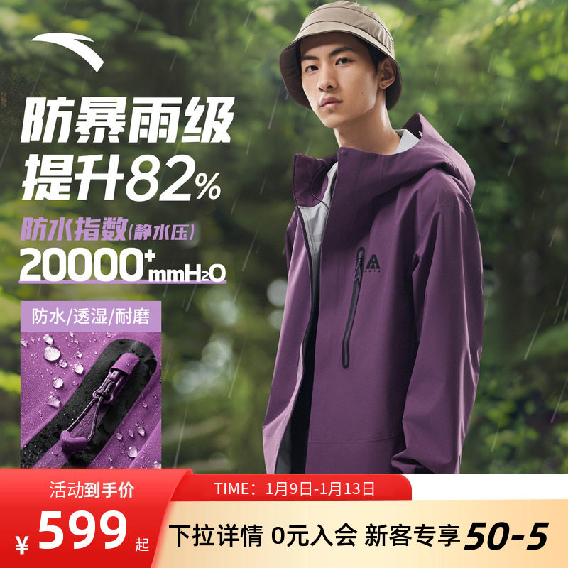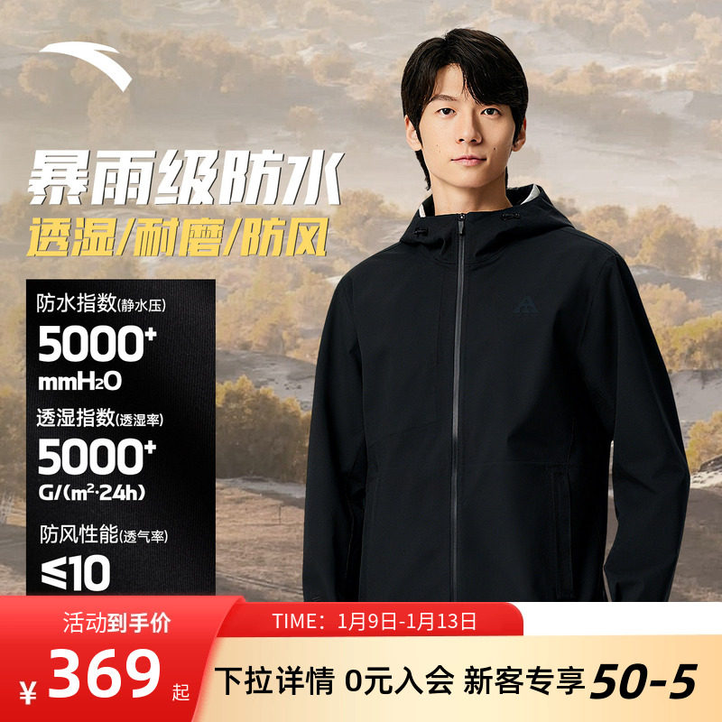 安踏大地之壳3 水壳冲锋衣男款暴雨级防水防风衣徒步登山连帽外套