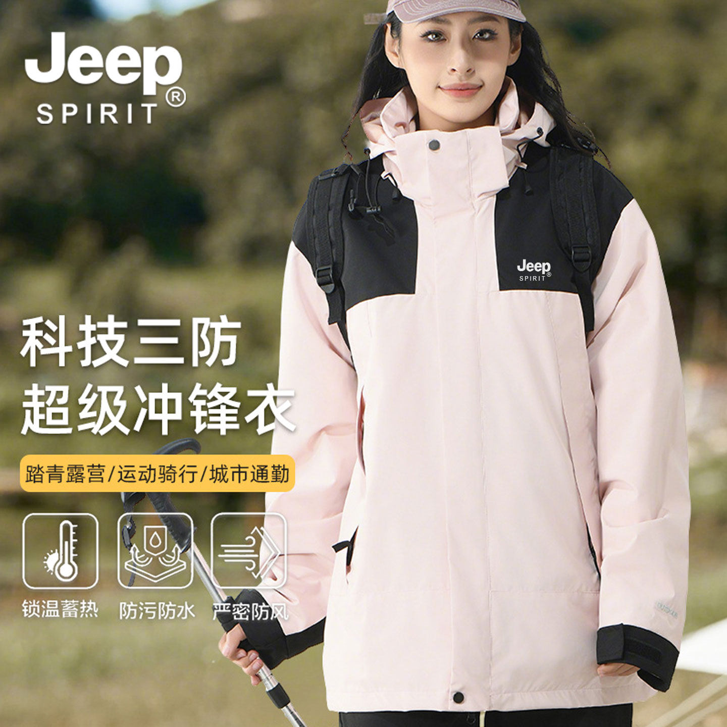 Jeep吉普冲锋衣秋冬季新款男女户外防泼水防风衣登山徒步夹克外套