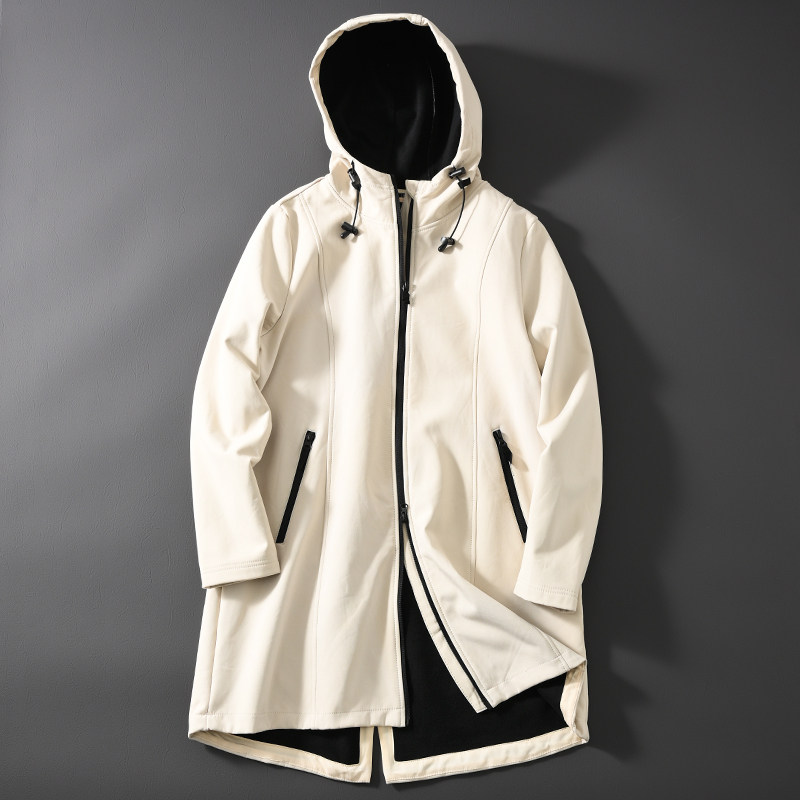 户外防风防泼水中长款男士连帽复合绒保暖软壳冲锋衣风衣夹克外套