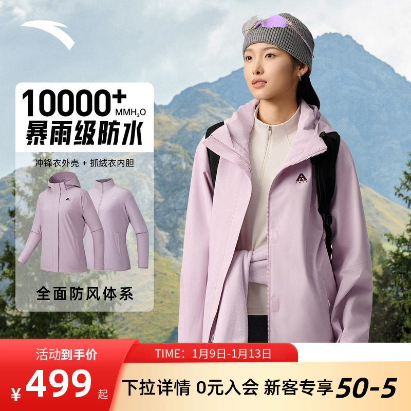 安踏大地之壳3.0水壳三合一冲锋衣女款秋冬新款户外防泼水防风衣
