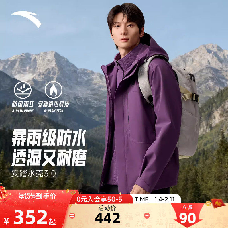 安踏大地之壳2水壳三合一男款硬壳冲锋衣暴雨级防泼水防风衣外套