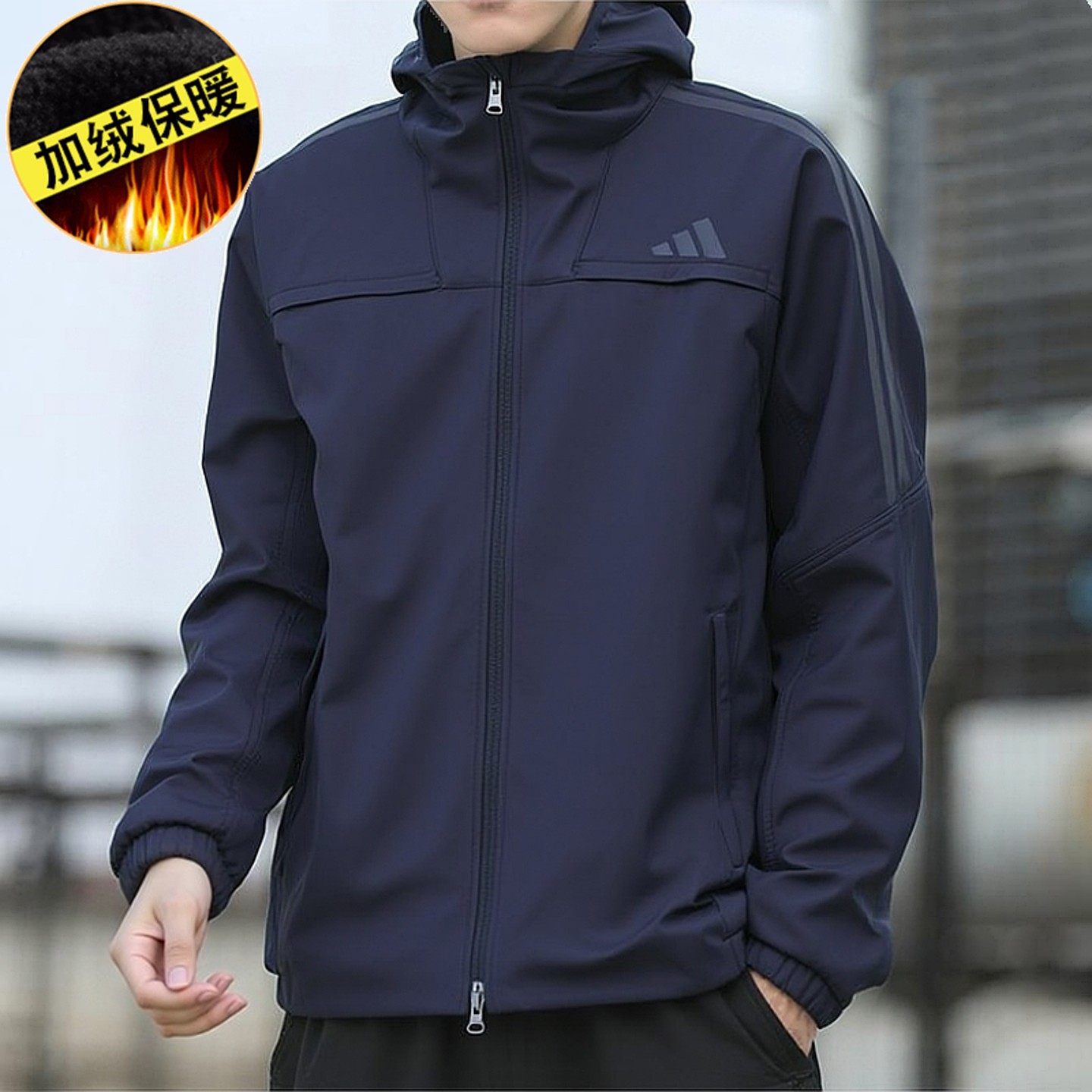 阿迪达斯拒水防风衣男秋季新款加厚保暖抓绒连帽户外夹克运动外套
