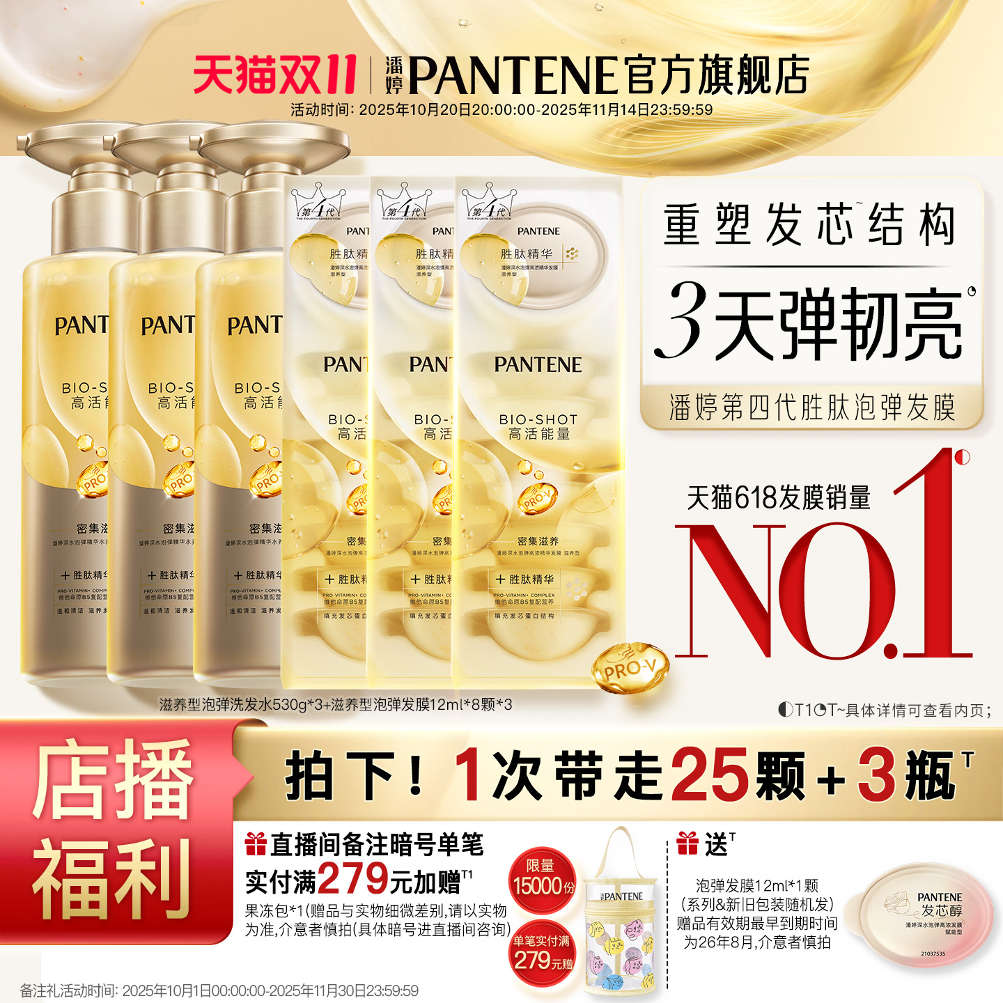潘婷三分钟茉莉山茶花香洗发水露护发素女发膜级洗护套装修护柔顺