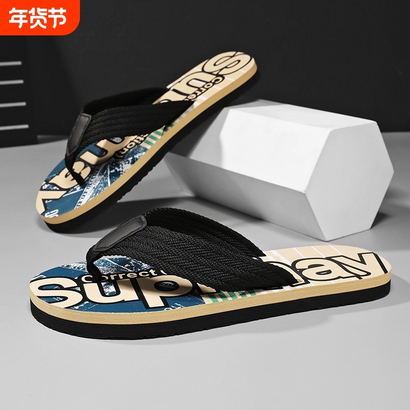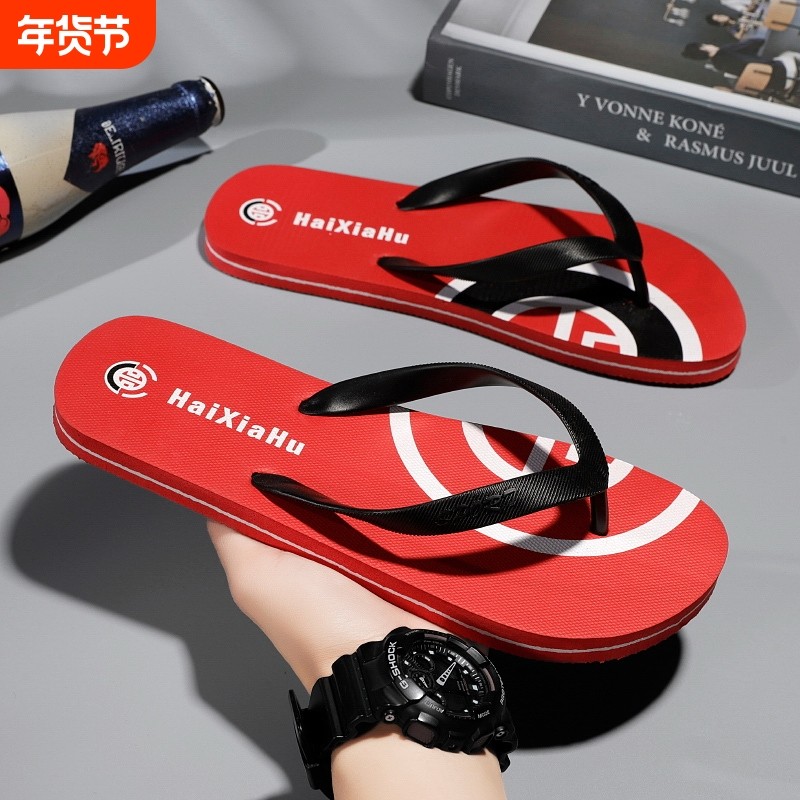 海峡虎人字拖男防滑休闲凉鞋网红潮流夹脚沙滩拖鞋男夏季耐磨橡胶