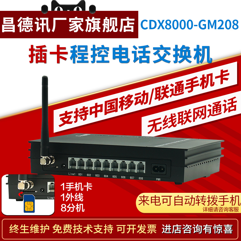 昌德讯GM208无线集团程控电话交换机2进8出GSM手机卡做外线无线转有线4G全网通无线平台英文MS108-GSM