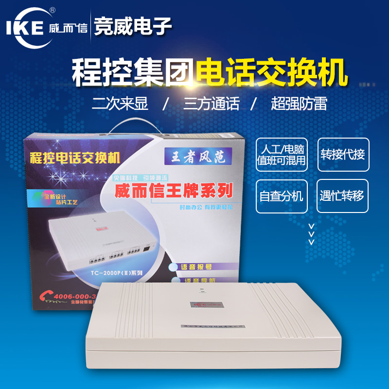 超划算王牌程控电话交换机2进8出 集团分机2拖8内线 来显语音提示