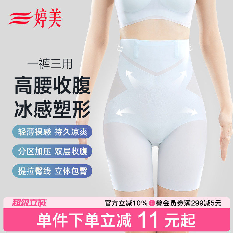 婷美薄款高腰收腹裤强收小肚子束腰收胯防走光提臀收腰塑形内裤女