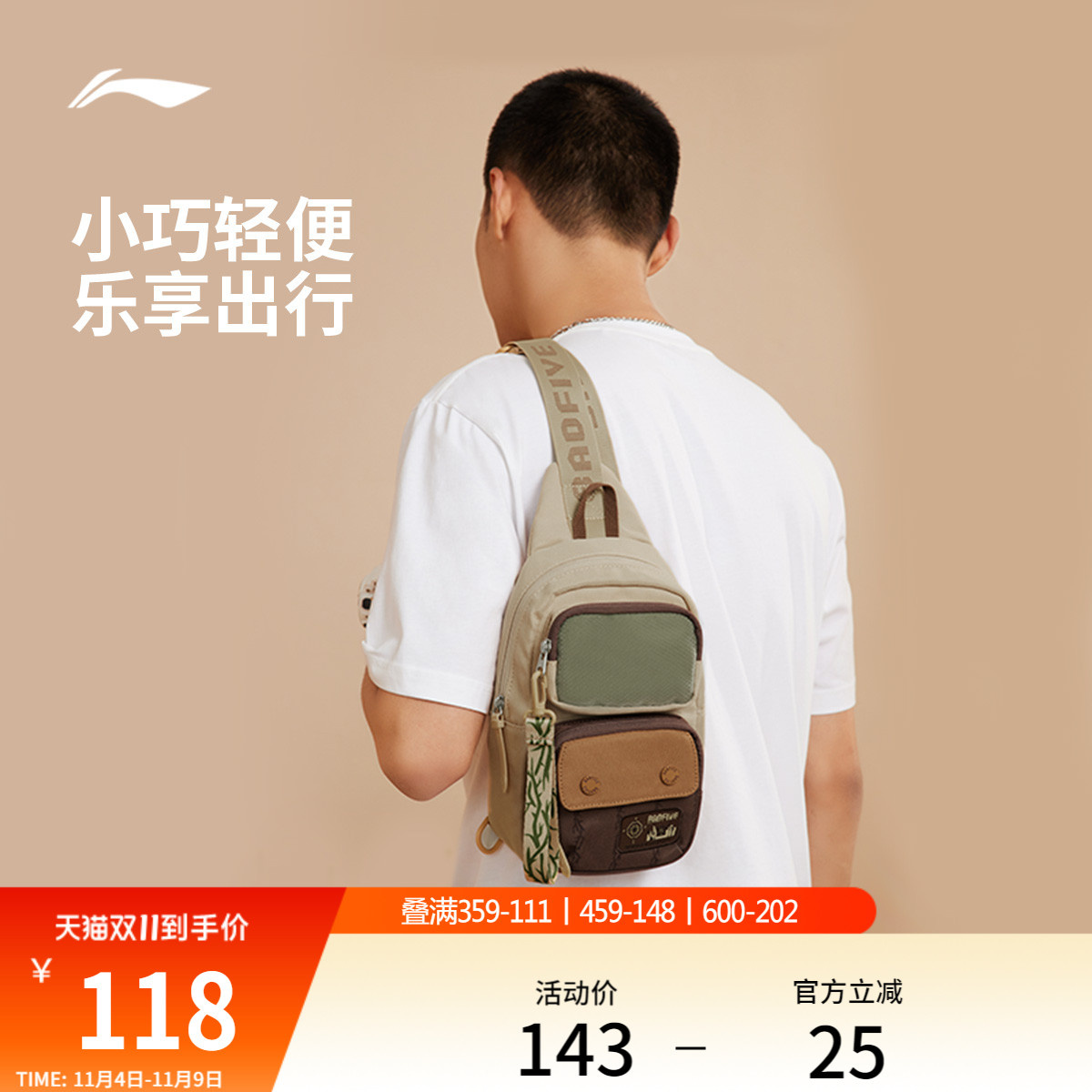 李宁单肩斜挎包男士官方正品户外小型轻便多功能胸包休闲运动包女