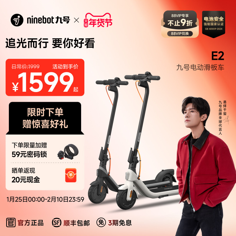 【易烊千玺同款】九号Ninebot电动滑板车9号成人折叠上班代步E2
