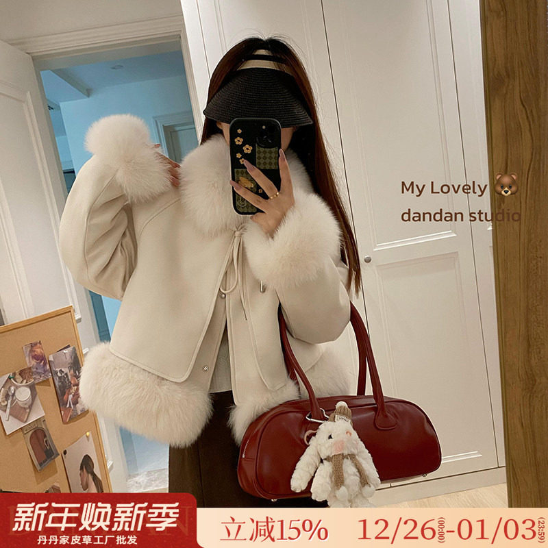 小个子狐狸毛皮草外套女款2025秋冬季新款系带短款鹅绒内胆年轻款