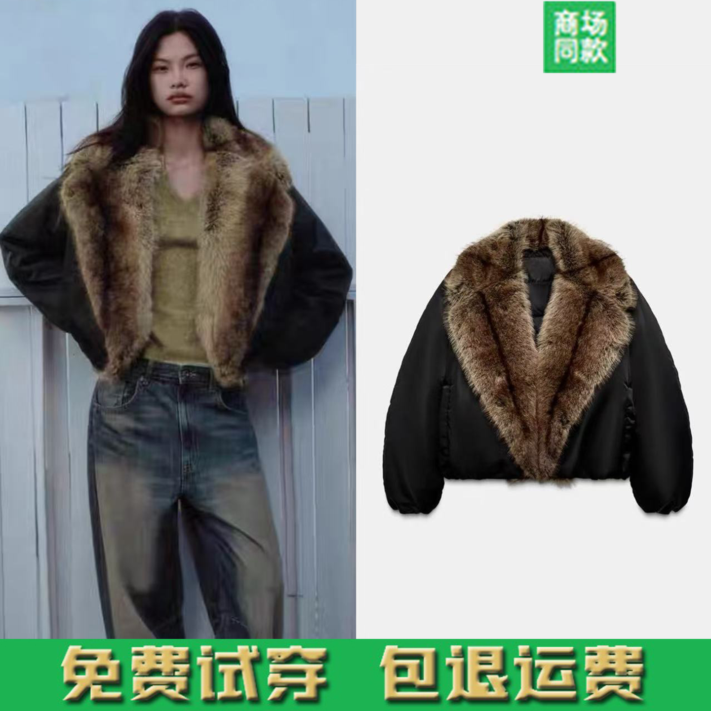 冬季新品女款时尚人造皮草效果领口外套大衣夹克棉衣 4369256