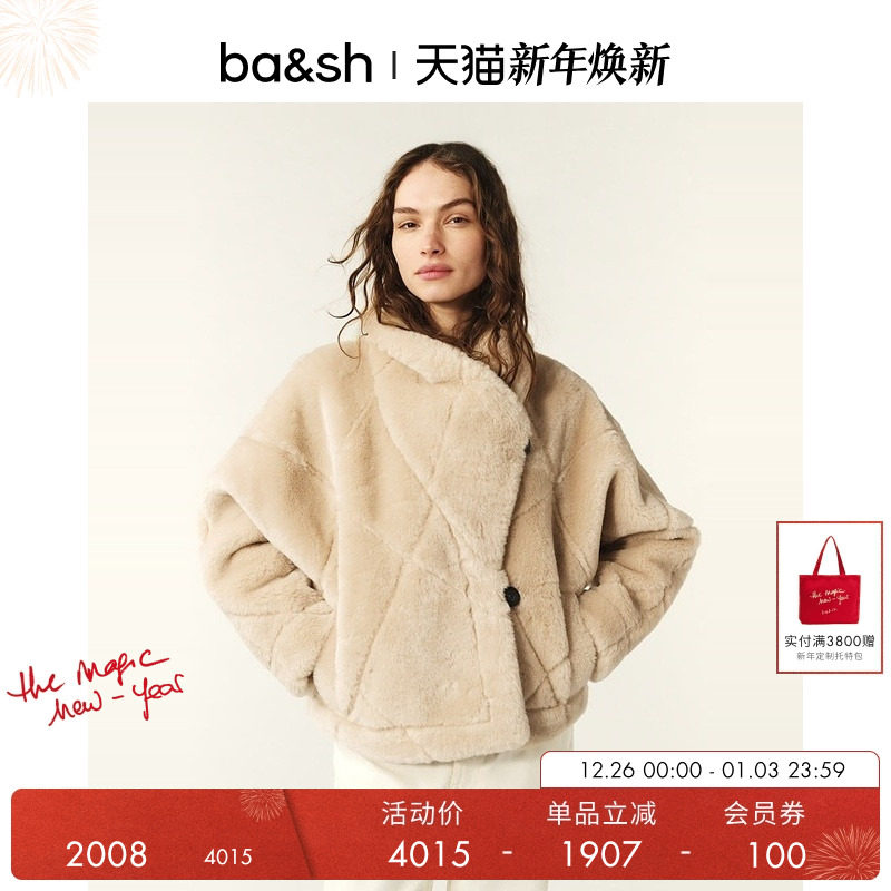 bash冬季法式环保皮草大地色毛绒短外套女款短款保暖上衣1H24VINI