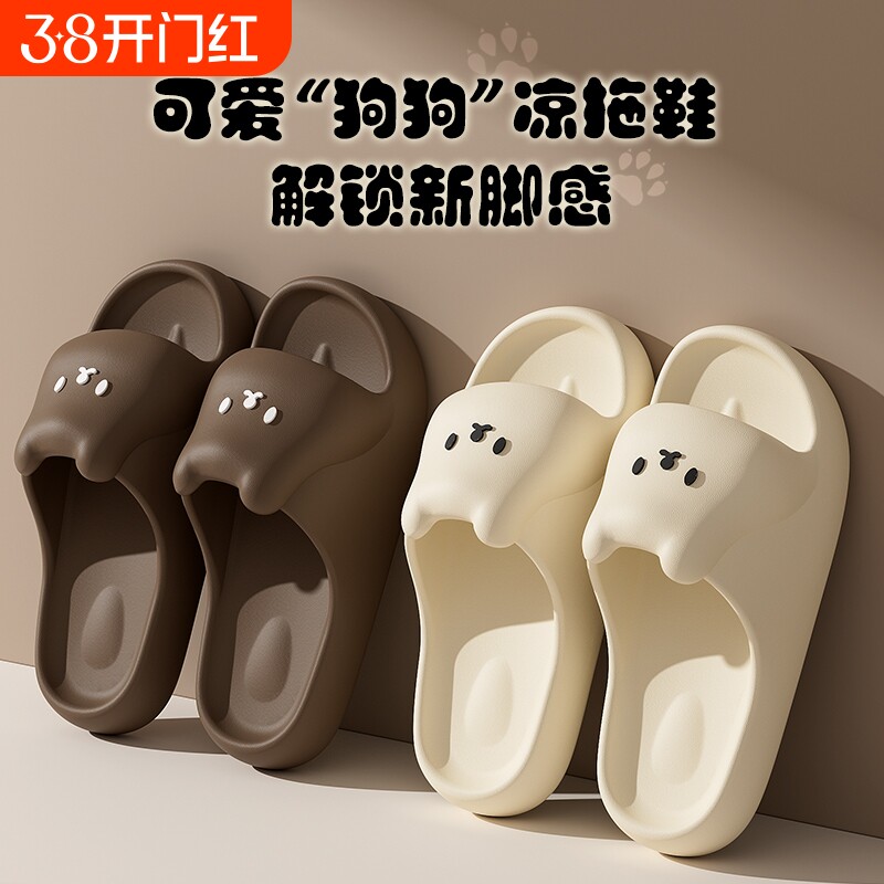 可爱小狗夏季洗澡凉拖鞋踩屎感舒适软底居家情侣一字拖eva拖鞋女