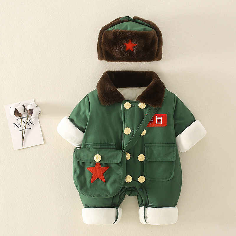 网红婴儿衣服秋冬季加绒加厚款连体棉军大衣宝宝冬装外出棉服棉袄