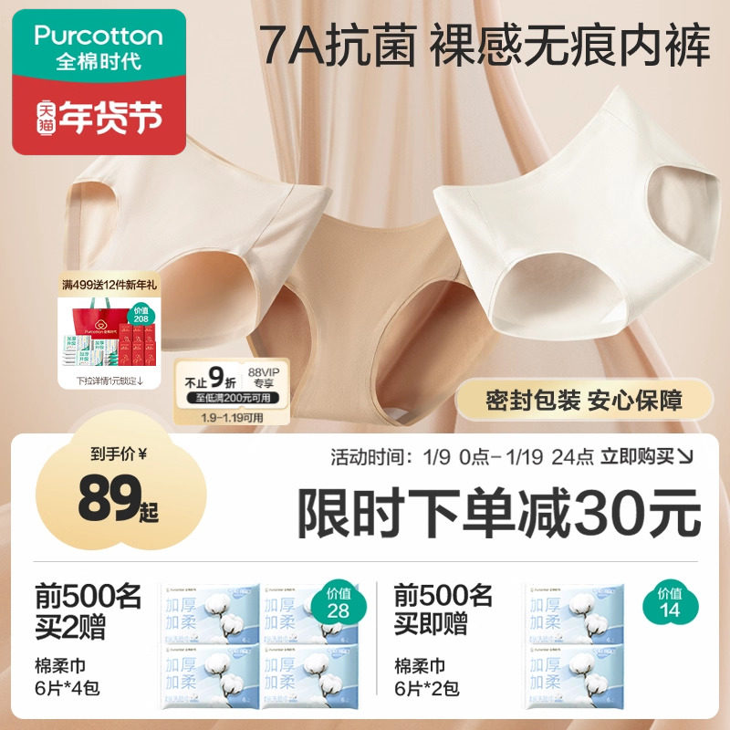 全棉时代女士内裤纯棉7A级抗菌三角裤女生2025年新款透气无痕中腰