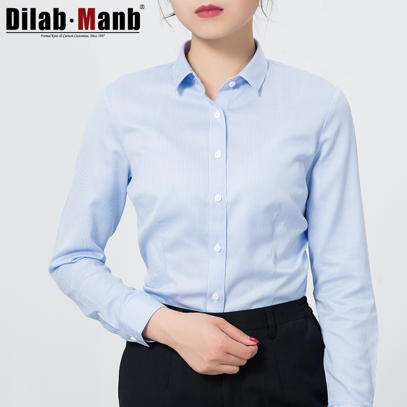 帝蒙条纹衬衫女长袖纯棉免烫职业高端衬衣女修身气质正装OL工作服
