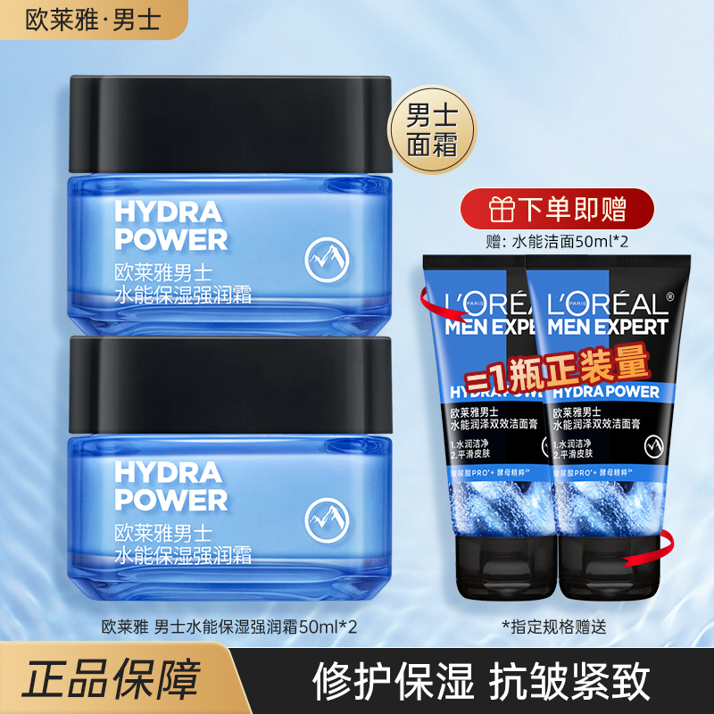 欧莱雅男士面霜保湿霜水能强润霜滋润补水清爽乳液擦脸油正品保障